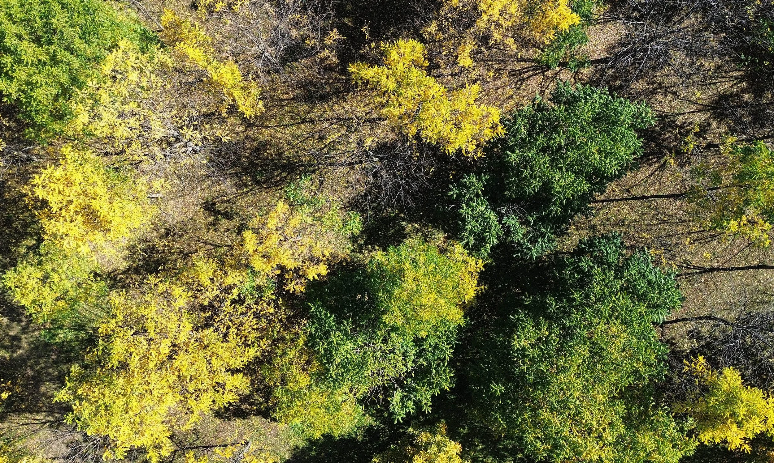 Mustajalopähkinätarhan syysväriä ja puiden talveentumisen erilaisia vaiheita.
